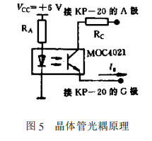 只需取下圖1所示的D1和D2兩個二極管,然后接到MOC4021光電隔離器的二極管側,另外2個端點按圖5所示接到晶閘管的控制極G和陽極A上。Rc及Rx的參數設計如下: