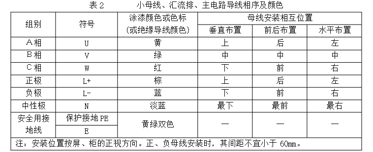 12 小母線、匯流排、主電路導(dǎo)線相序及色彩應(yīng)符合表3規(guī)則。