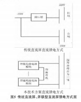 傳統(tǒng)直流屏控母和合母由于電壓不共同,負(fù)載要嚴(yán)格區(qū)別,比如,微機(jī)保護(hù).指示燈等有必要接入控母,斷路器分合閘、儲能電機(jī)等負(fù)載有必要接人合母。本文所論述的技能控母和合母的電壓等級共同,并聯(lián)輸出,可互用,便利用戶的使用。傳統(tǒng)直流屏、并聯(lián)型直流屏饋電方法,如圖5所示。